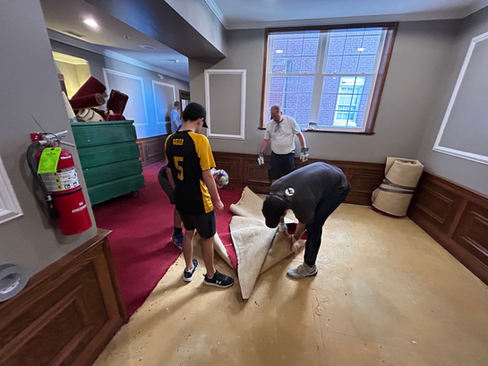 The tasks of the day were varied and vital. Teams impressively landscaped courtyards cleaned basements and installed necessary fixtures in new staff offices. Among the less glamorous but equally important tasks was removing old carpets to make way for new flooring. Kegley says, "The high schoolers were so fun to work with and helped us remove the carpet to make way for a beautiful new floor being installed later this month. They had a tough job that required some grit, but they were laughing and smiling all the way through!" added Kegley.
